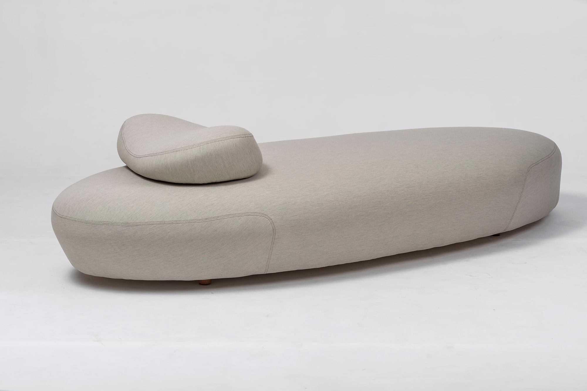 O desenho orgânico e levemente arredondado das peças convida à contemplação, enquanto o